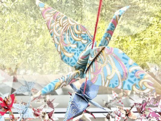 Die Kunst des Origami fltens liegt in der Achtsamkeit und im Moment des Tuns. In dieser Absicht falte ich in jeden Kranich Zuversicht und guten Gedanken hinein .